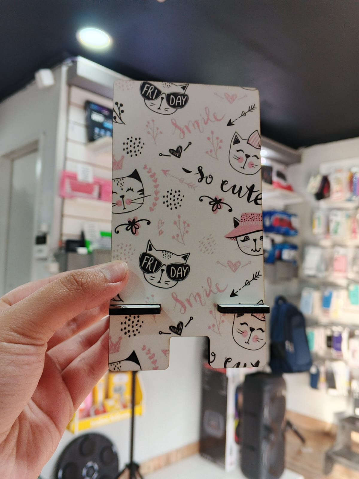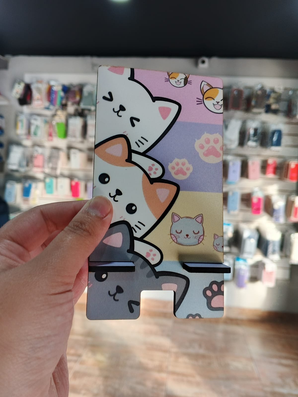 Soportes de madera resistentes, con grabados modernos y una base firme que asegura tu celular en posición vertical u horizontal. Son prácticos, decorativos y compatibles con todos los equipos. Un toque cálido y funcional para tus espacios.